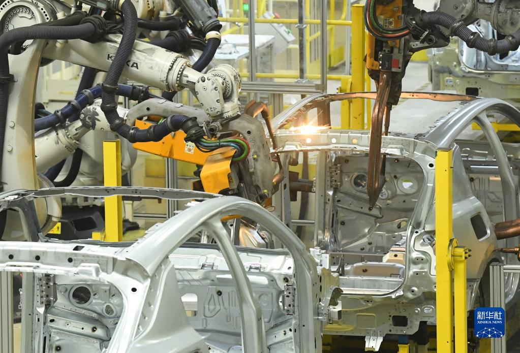 4月11日,智能機器人在領(lǐng)克汽車(chē)寧波余姚工廠(chǎng)焊裝車(chē)間工作。