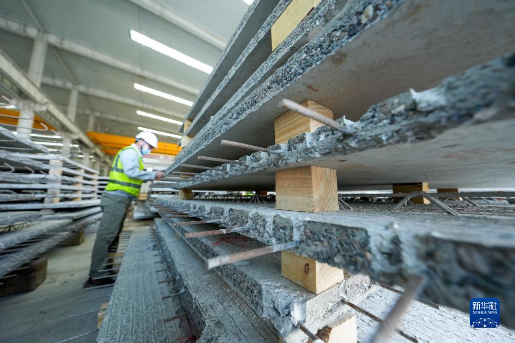4月11日,河北省玉田縣一家裝配式建筑制造企業(yè)的工人在查驗產(chǎn)品質(zhì)量。