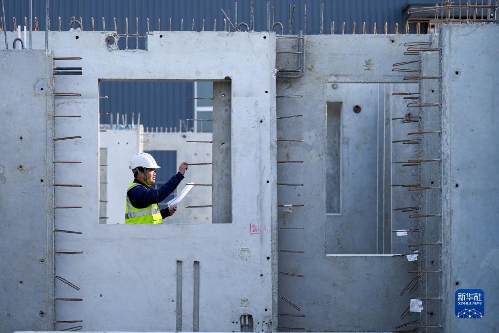 4月11日,河北省玉田縣一家裝配式建筑制造企業(yè)的工人在查驗產(chǎn)品質(zhì)量。