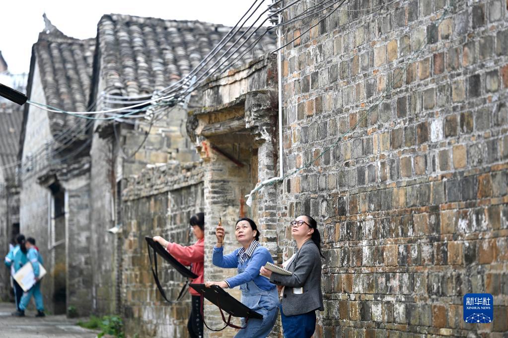 4月10日,在柳城縣古砦仫佬族鄉大戶(hù)村灘頭屯,繪畫(huà)愛(ài)好者在民居旁寫(xiě)生。
