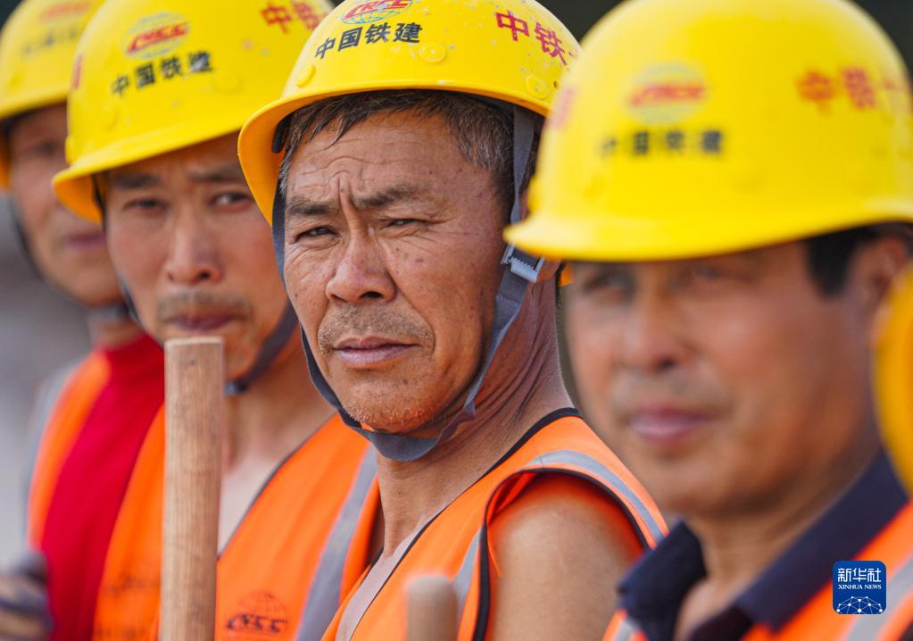 圖為2023年3月20日拍攝的參加梁開(kāi)高速梁平段工程的筑路工人。