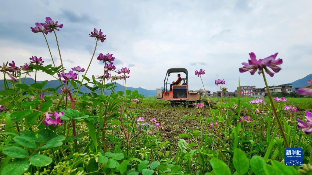 4月11日,在常寧市洋泉鎮杉樹(shù)村,科技特派員駕駛農機幫助村民翻耕農田。