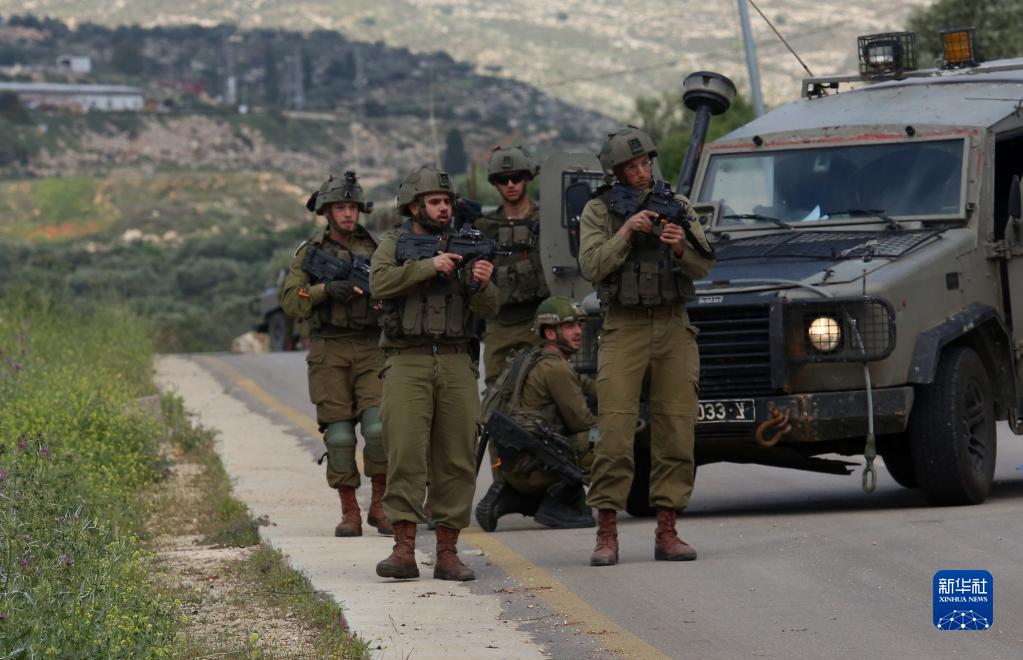 這是4月11日在納布盧斯交火現場(chǎng)附近拍攝的以色列士兵。