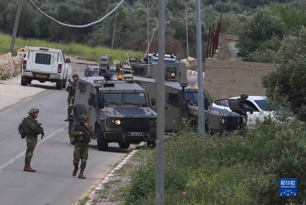 這是4月11日在納布盧斯交火現場(chǎng)附近拍攝的以色列士兵。