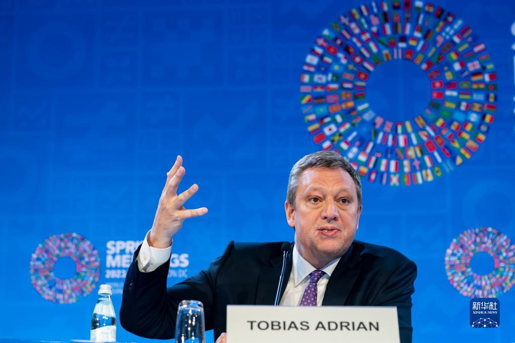 4月11日,在美國華盛頓,IMF貨幣與資本市場(chǎng)部主任托比亞斯·阿德里安出席記者會(huì )。