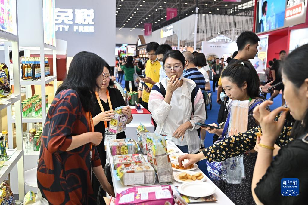 在??谂e行的第三屆中國國際消費品博覽會(huì )上,來(lái)自全球的優(yōu)質(zhì)農產(chǎn)品和特色美食云集。觀(guān)眾在消博會(huì )上品嘗美食,享受舌尖上的盛宴。