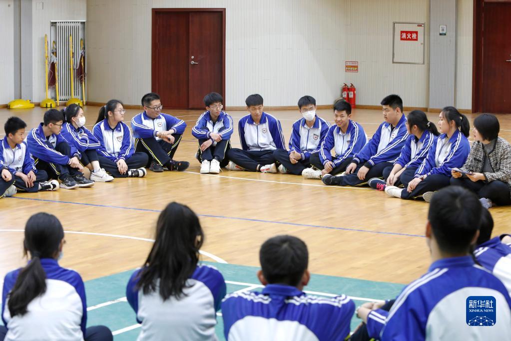 4月12日,大連市第十一中學(xué)的心理教師在體育館給學(xué)生上心理團體輔導課。