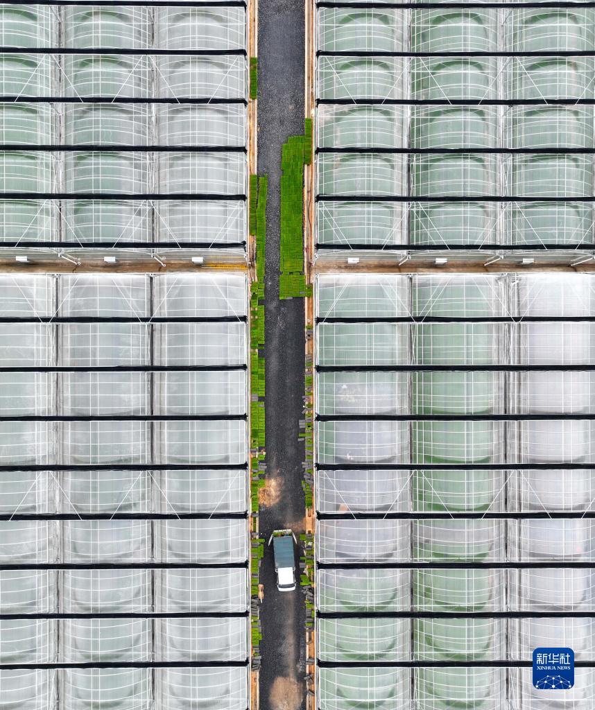 4月12日,在湖南省永州市道縣營(yíng)江街道濂南村農業(yè)綜合服務(wù)中心育秧基地,村民將早稻秧苗裝車(chē)(無(wú)人機照片)。