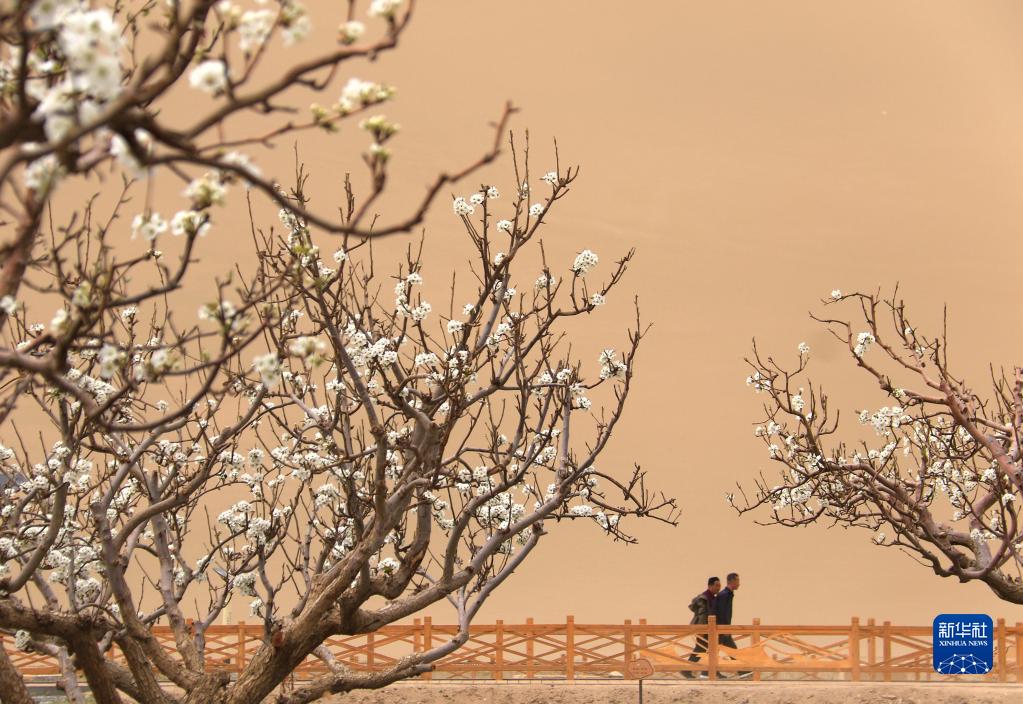近日,甘肅省敦煌市鳴沙山月牙泉景區內的桃花、梨花、丁香花競相綻放,別有一番韻味。