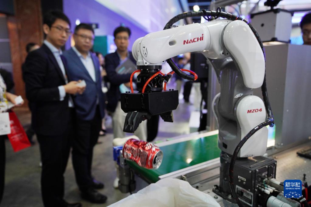 4月12日在首屆香港國際創(chuàng )科展上拍攝的進(jìn)行垃圾分類(lèi)的機器臂。