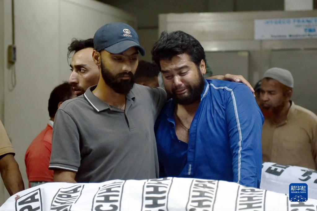 4月13日,在巴基斯坦卡拉奇一家醫院,火災事故遇難者家屬悲痛不已。