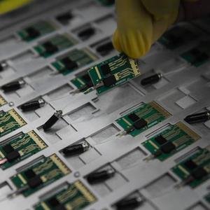 技術(shù)人員在光模塊生產(chǎn)線(xiàn)作業(yè)(4月11日攝)。