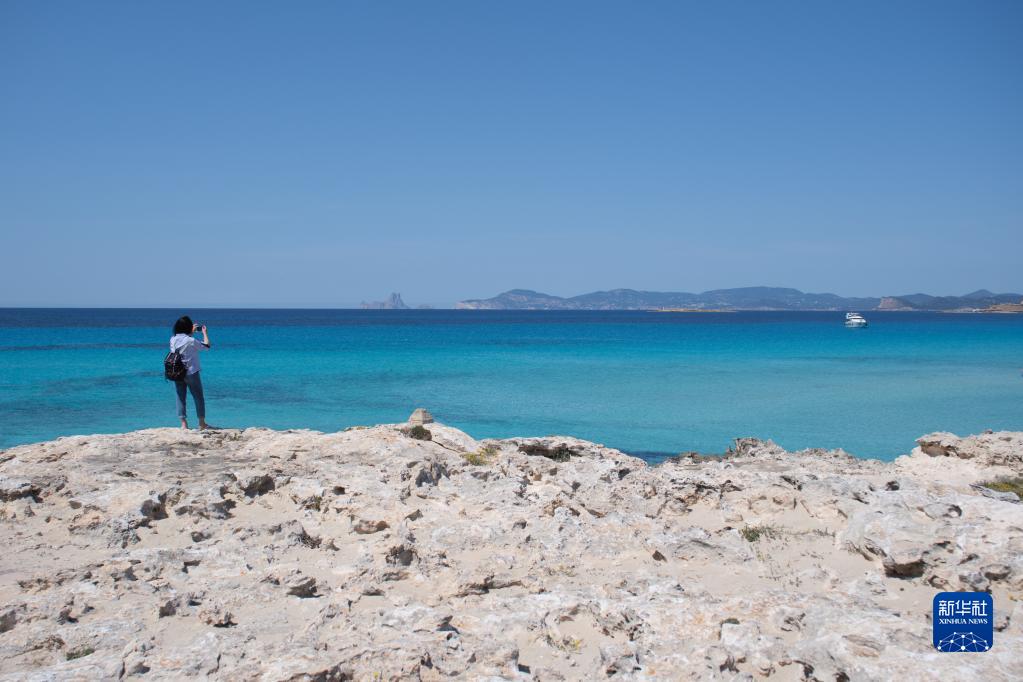 4月11日,一名游客在西班牙巴利阿里群島福門(mén)特拉島海邊游覽。