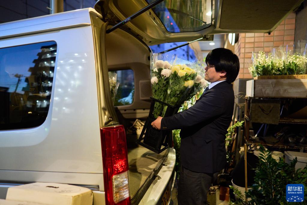在日本千葉縣千葉市,小西武將從中國云南進(jìn)口的鮮花送到訂貨的花店(4月3日攝)。