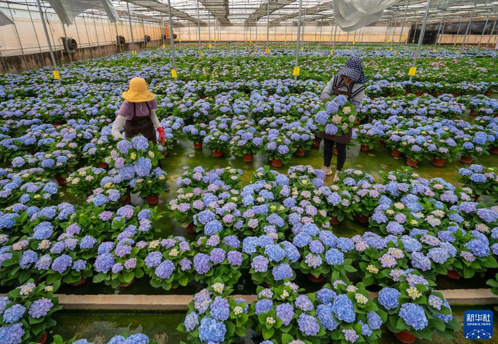云南省開(kāi)遠市的花農們在檢查鮮花生長(cháng)情況(3月22日攝)。