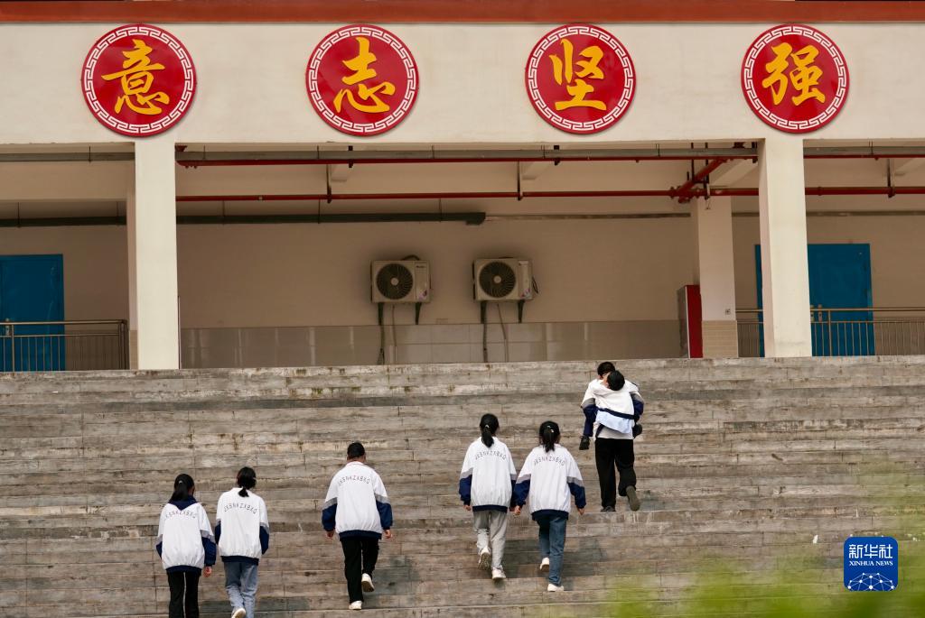 4月13日,朱金祥(右一)背著(zhù)鐘華強返回教室。