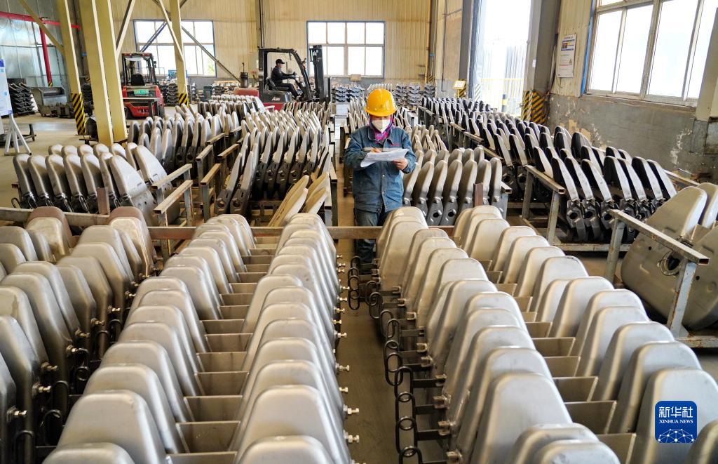 4月13日,工人在唐山龍泉機械有限公司車(chē)間內核對產(chǎn)品信息。