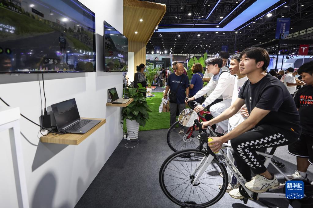 4月14日,觀(guān)眾在消博會(huì )現場(chǎng)體驗智能騎行。
