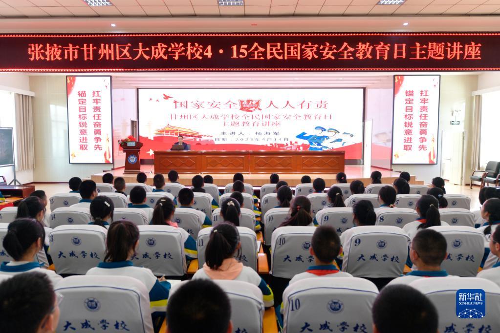 4月14日,在張掖市甘州區大成學(xué)校,學(xué)生們參加全民國家安全教育日主題講座。