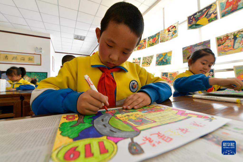 4月14日,在張掖市甘州區大成學(xué)校,學(xué)生創(chuàng )作國家安全教育相關(guān)的手抄報。