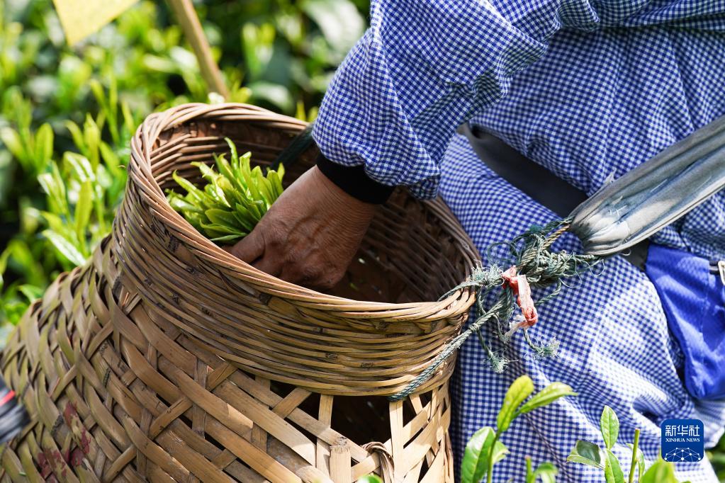 4月14日,在安徽省黃山市黃山區新明鄉猴坑村,茶農采摘太平猴魁鮮葉。