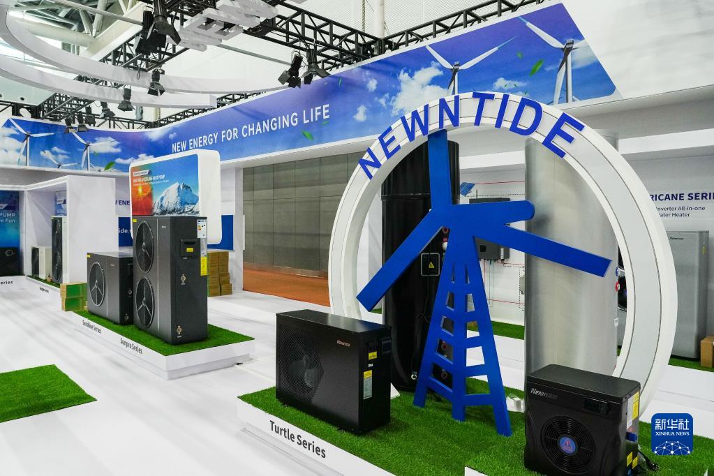 本屆廣交會(huì )新設置了新能源及智能網(wǎng)聯(lián)汽車(chē)出口展區。這是一家新能源企業(yè)的交易展臺(4月14日攝)。