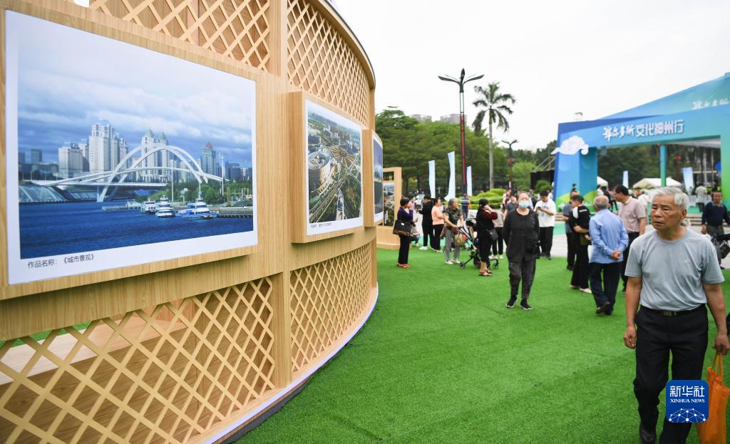4月14日,在廣東佛山市文華公園,觀(guān)眾在觀(guān)看鄂爾多斯主題影展。