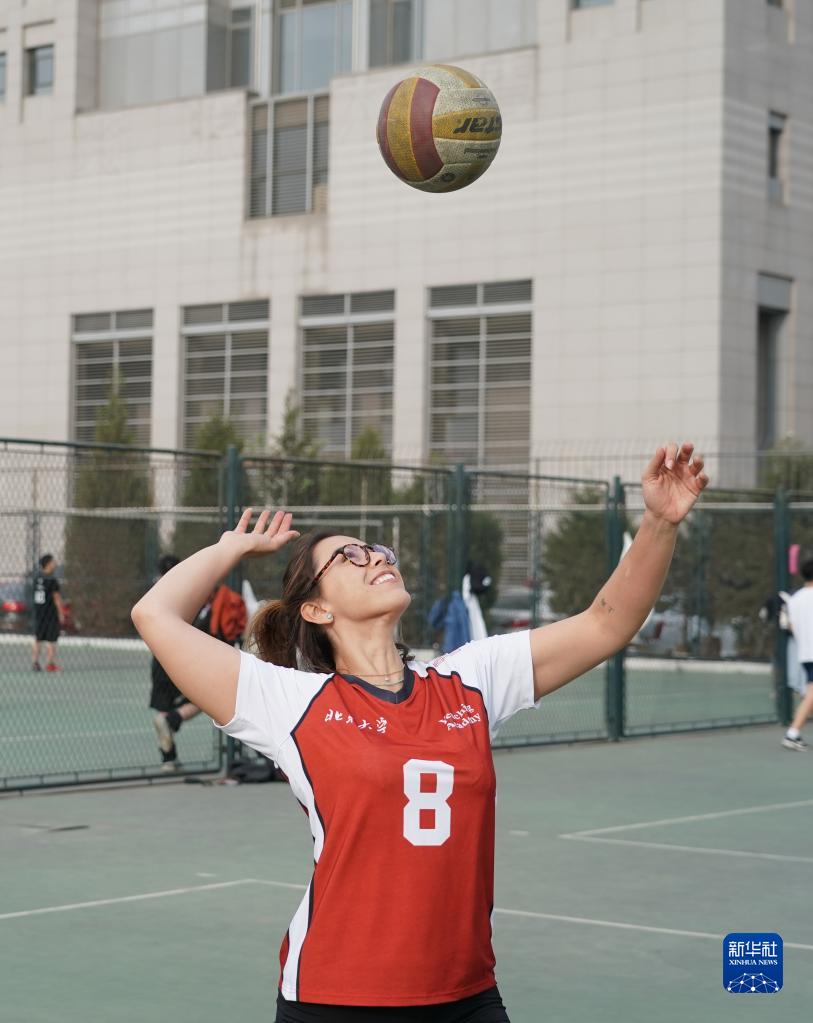 3月31日,馬努在北京大學(xué)練習排球。