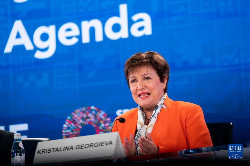 4月13日,在美國華盛頓,國際貨幣基金組織(IMF)總裁格奧爾基耶娃出席記者會(huì )。