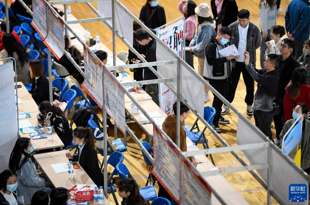 這是4月15日拍攝的2023年寧夏春季綜合類(lèi)大型人才招聘會(huì )現場(chǎng)。
