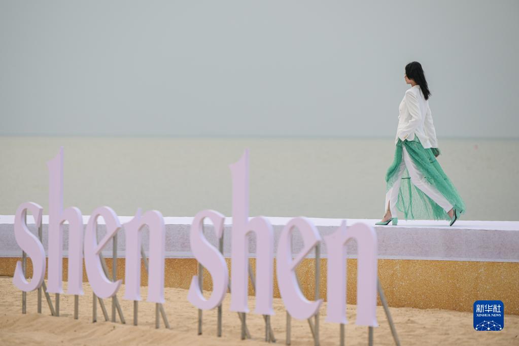 4月13日,模特在消博會(huì )時(shí)裝周海邊秀場(chǎng)展示時(shí)裝作品。