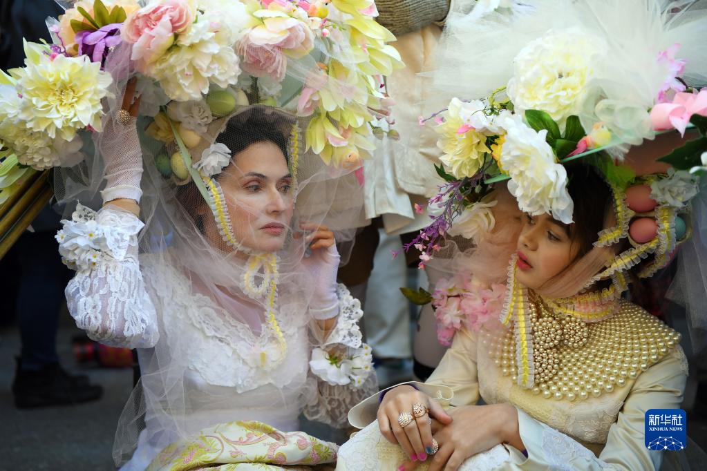 4月9日,在美國紐約,人們參加復活節花帽游行。