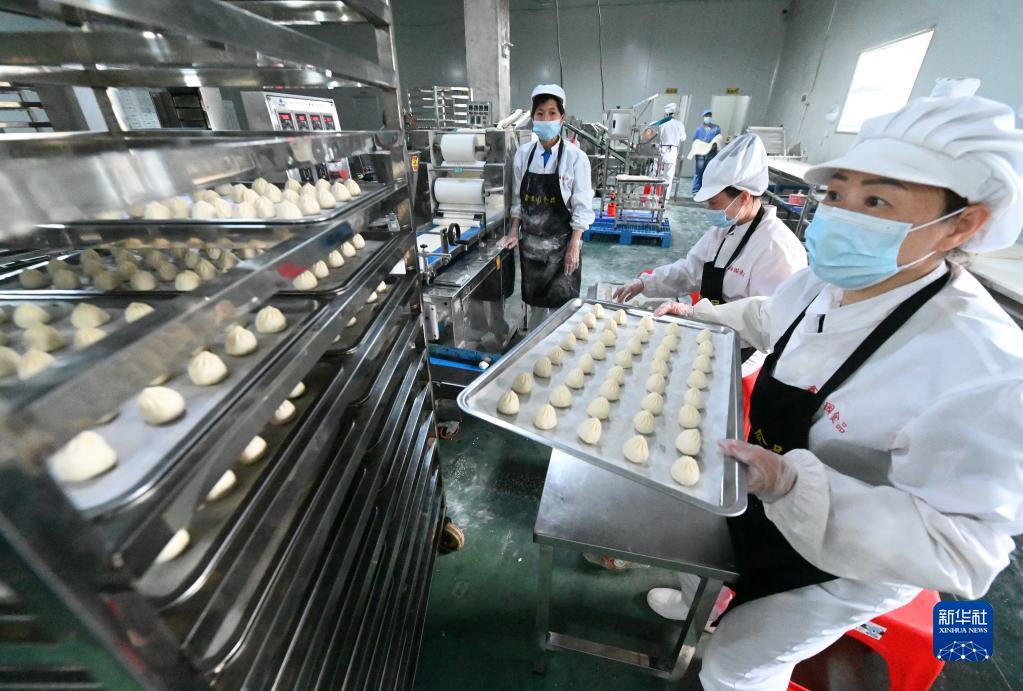 4月14日,在位于三明市沙縣庫區移民創(chuàng )業(yè)園的福建鑫滿(mǎn)園食品科技有限公司,工人在生產(chǎn)小籠包。