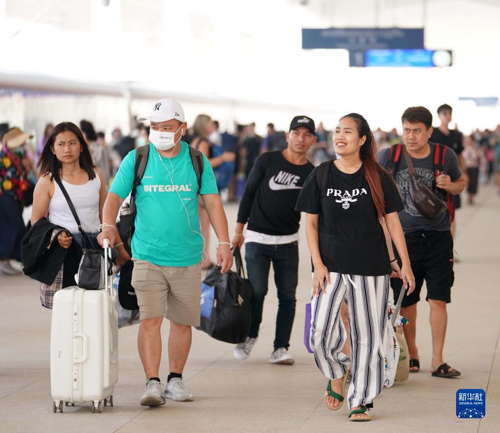 4月15日,旅客在老撾萬(wàn)象站出站。