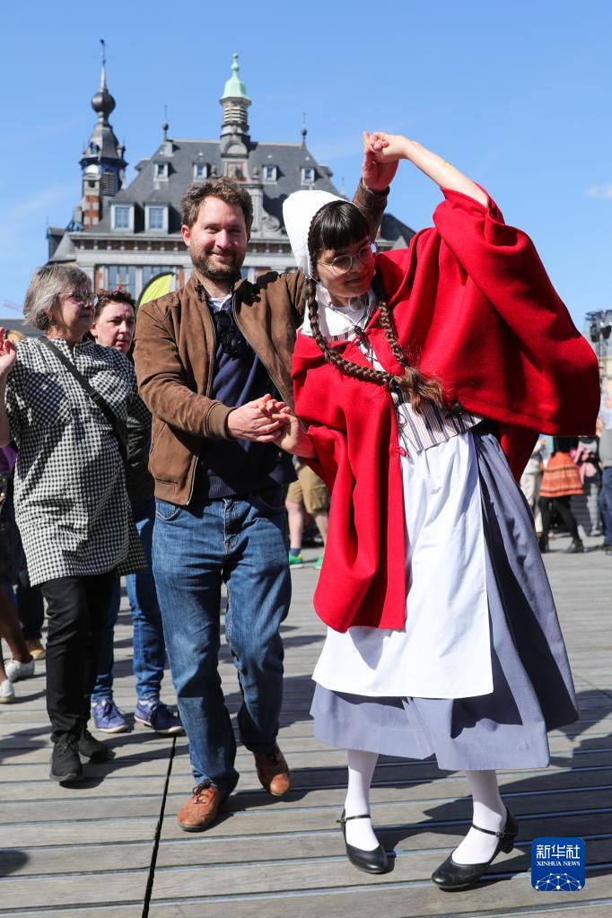 4月15日,人們在比利時(shí)那慕爾市傳統民俗日活動(dòng)上跳舞。