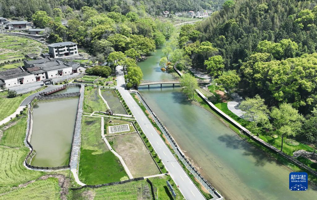 這是4月7日拍攝的江西省靖安縣璪都鎮港背村(無(wú)人機照片)。