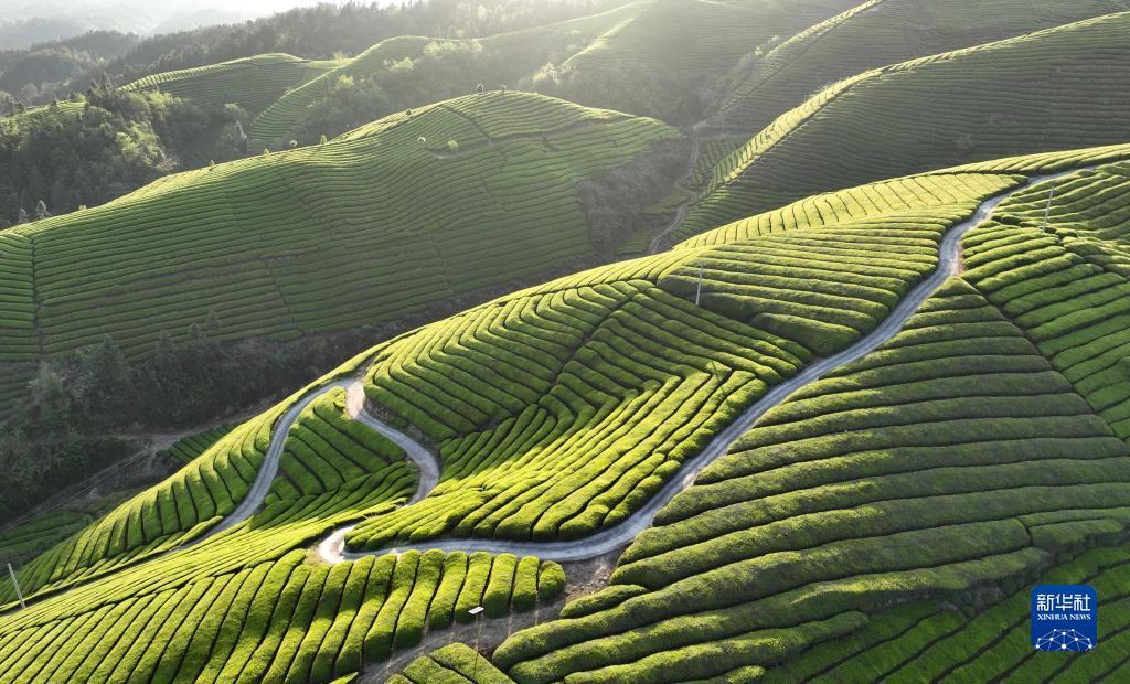 4月16日拍攝的鶴峰縣走馬鎮木耳山茶園(無(wú)人機照片)。