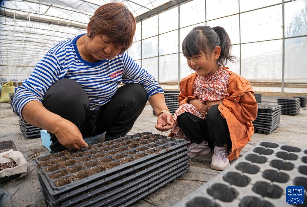 4月17日,在河北省永清縣龍虎莊鄉興晟現代農業(yè)園區的育苗大棚內,農戶(hù)在育西瓜苗。