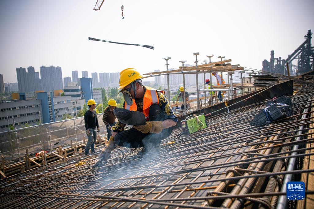 4月17日,中建三局的建筑工人在杭鋼工業(yè)舊址綜保項目一期工程現場(chǎng)施工。