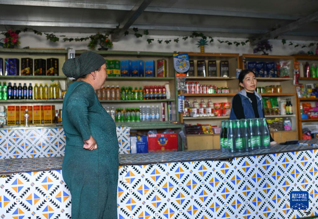 春羔生產(chǎn)期是一年中最繁忙的時(shí)節,大女兒加孜拉(右)從60公里外的托里縣庫普鄉趕回牧場(chǎng)幫忙,母女倆在商店內賣(mài)東西(4月12日攝)。