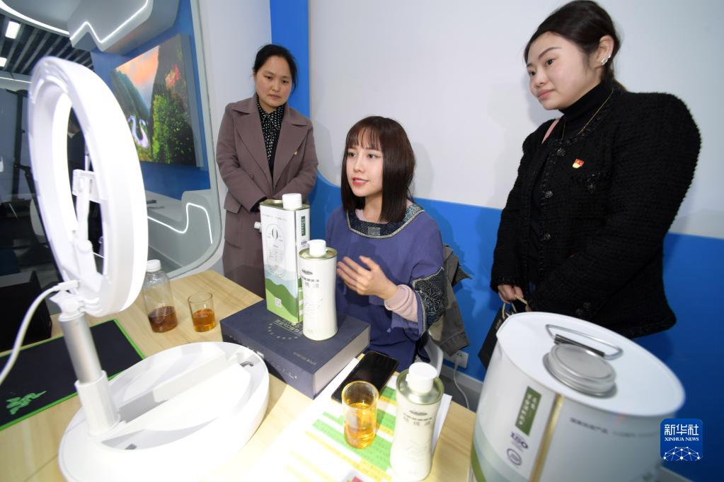 工作人員在貴州省遵義市村級集體經(jīng)濟發(fā)展中心線(xiàn)上銷(xiāo)售農特產(chǎn)品(3月23日攝)。