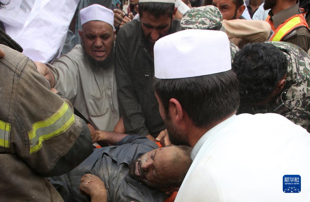4月18日,在巴基斯坦開(kāi)伯爾-普什圖省多爾哈姆,人們在山體滑坡現場(chǎng)轉移傷者。