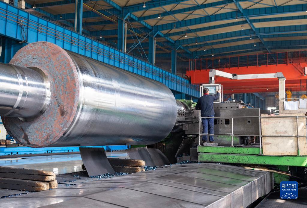 4月18日,工人在位于黑龍江省齊齊哈爾市的中國一重生產(chǎn)車(chē)間進(jìn)行生產(chǎn)作業(yè)。