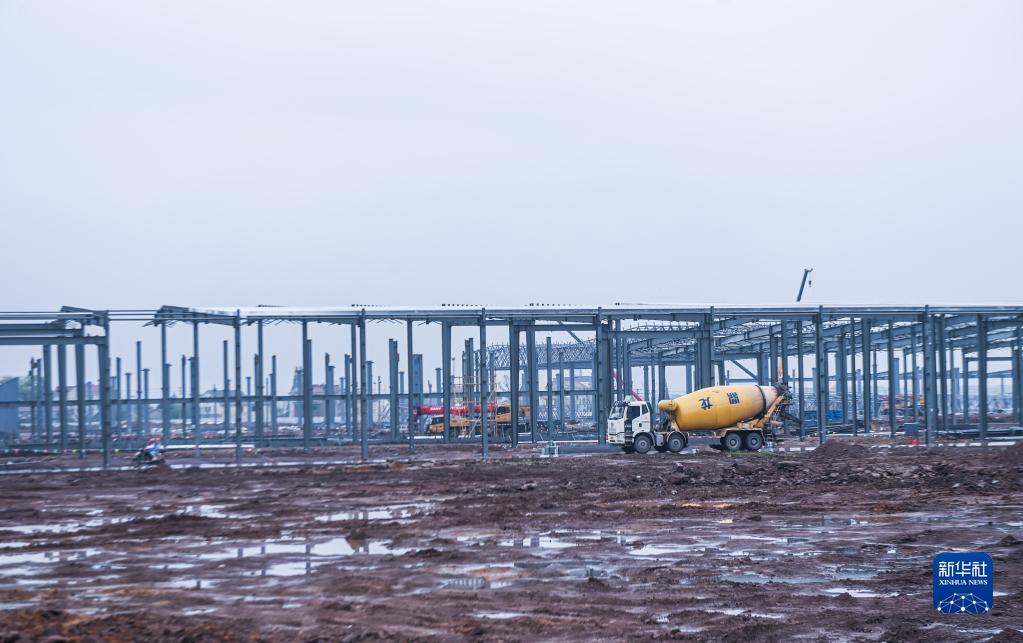 4月19日拍攝的金義新區新能源汽車(chē)零配件產(chǎn)業(yè)園部件總成車(chē)間、部件涂裝車(chē)間施工現場(chǎng)。