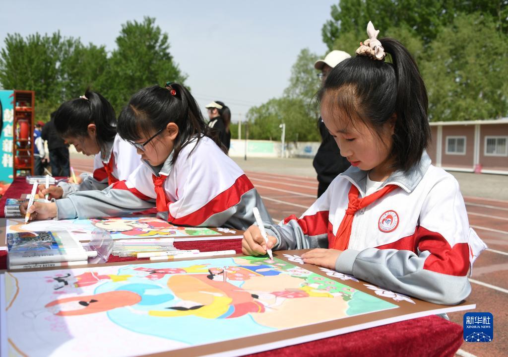4月19日,門(mén)樓中心小學(xué)的學(xué)生在活動(dòng)中繪制農民畫(huà)。