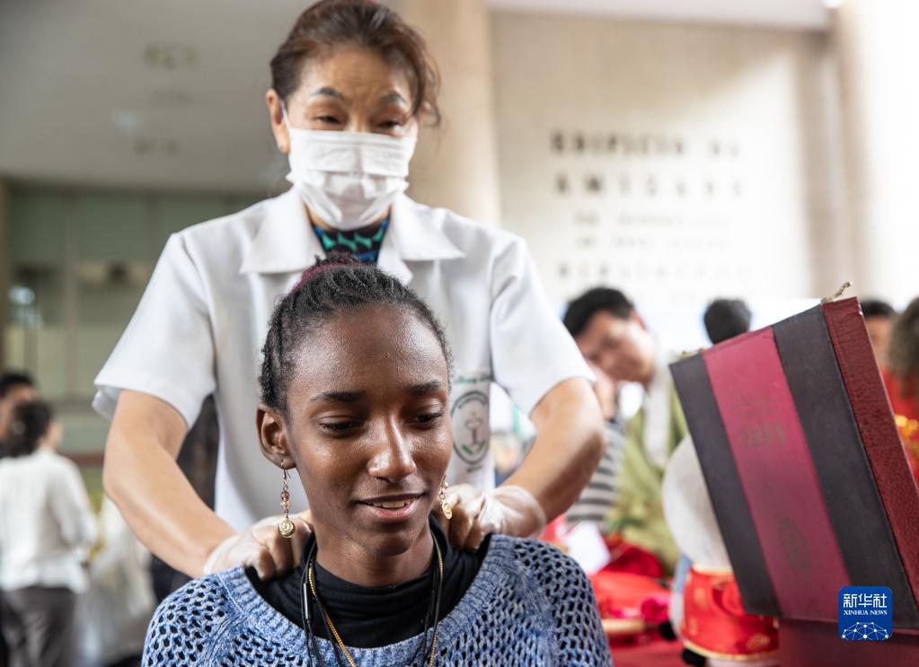 4月19日,一名學(xué)生在巴西里約熱內盧體驗中醫治療。
