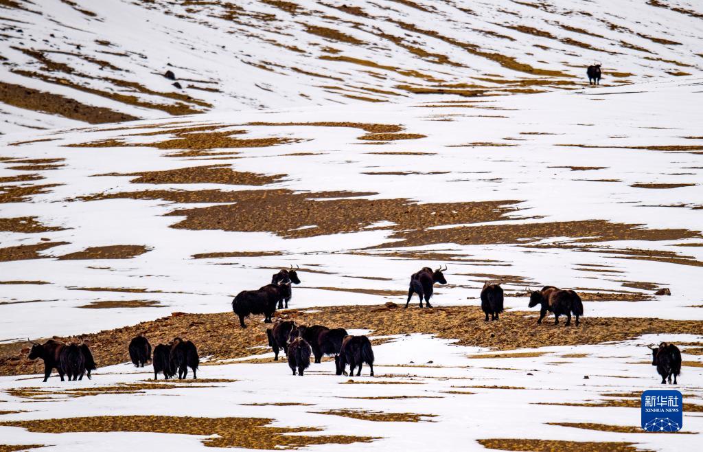 這是在羌塘國家級自然保護區那曲市雙湖縣區域內拍攝到的成群的野牦牛(4月17日攝) 。