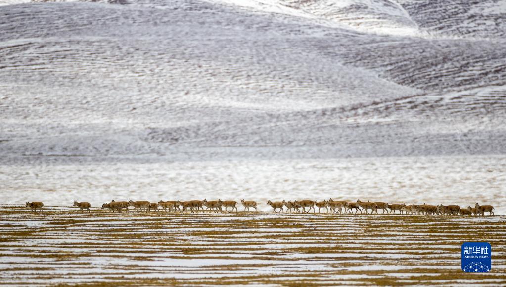 這是在羌塘國家級自然保護區那曲市雙湖縣區域內拍攝到的藏羚羊群(4月17日攝) 。