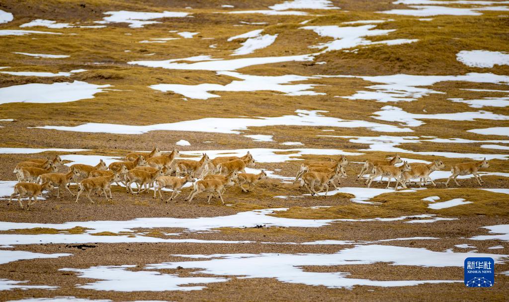 這是在羌塘國家級自然保護區那曲市雙湖縣區域內拍攝到的藏羚羊群(4月17日攝) 。