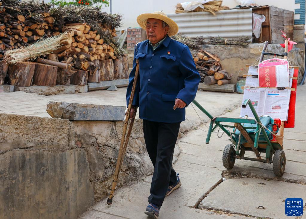 4月19日,李存德拉著(zhù)車(chē)前往農家書(shū)屋裝書(shū),準備出攤。新華社記者 崔文 攝